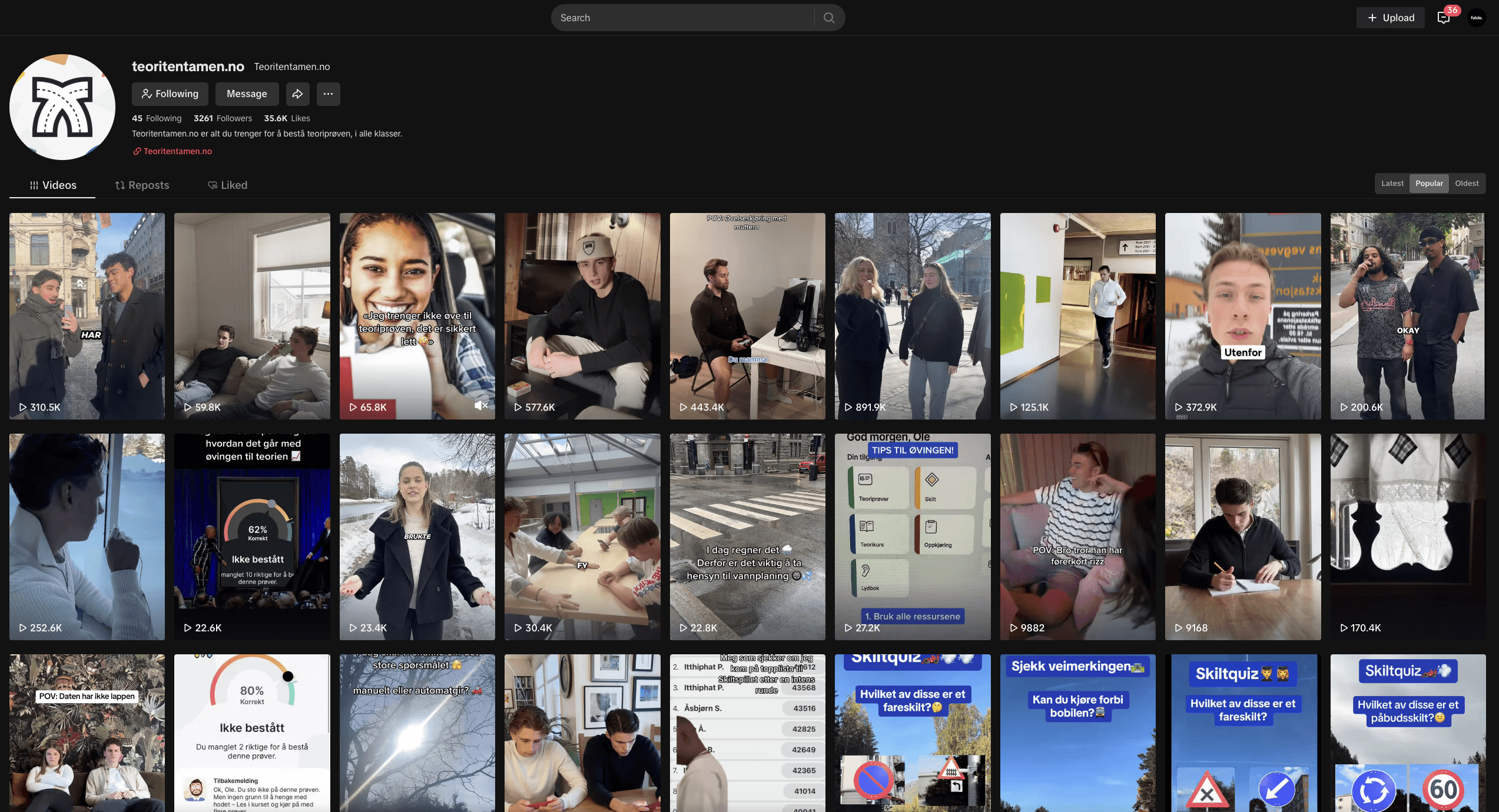 Skjermbildet nedenfor viser TikTok-profilen til Teoritentamen.